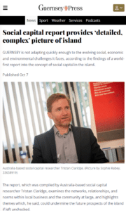 The findings reveal that Guernsey boasts exceptionally strong social capital, characterised by high levels of interpersonal trust, community solidarity, and a profound sense of belonging among its residents. However, several challenges and vulnerabilities pose significant threats to the continued strength of Guernsey’s social capital. The findings pose important questions about how the island can preserve social capital while adapting to new challenges and opportunities. By understanding and addressing the current challenges while capitalising on the island’s strengths, Guernsey can ensure that its social capital remains a cornerstone of its social and economic prosperity.
