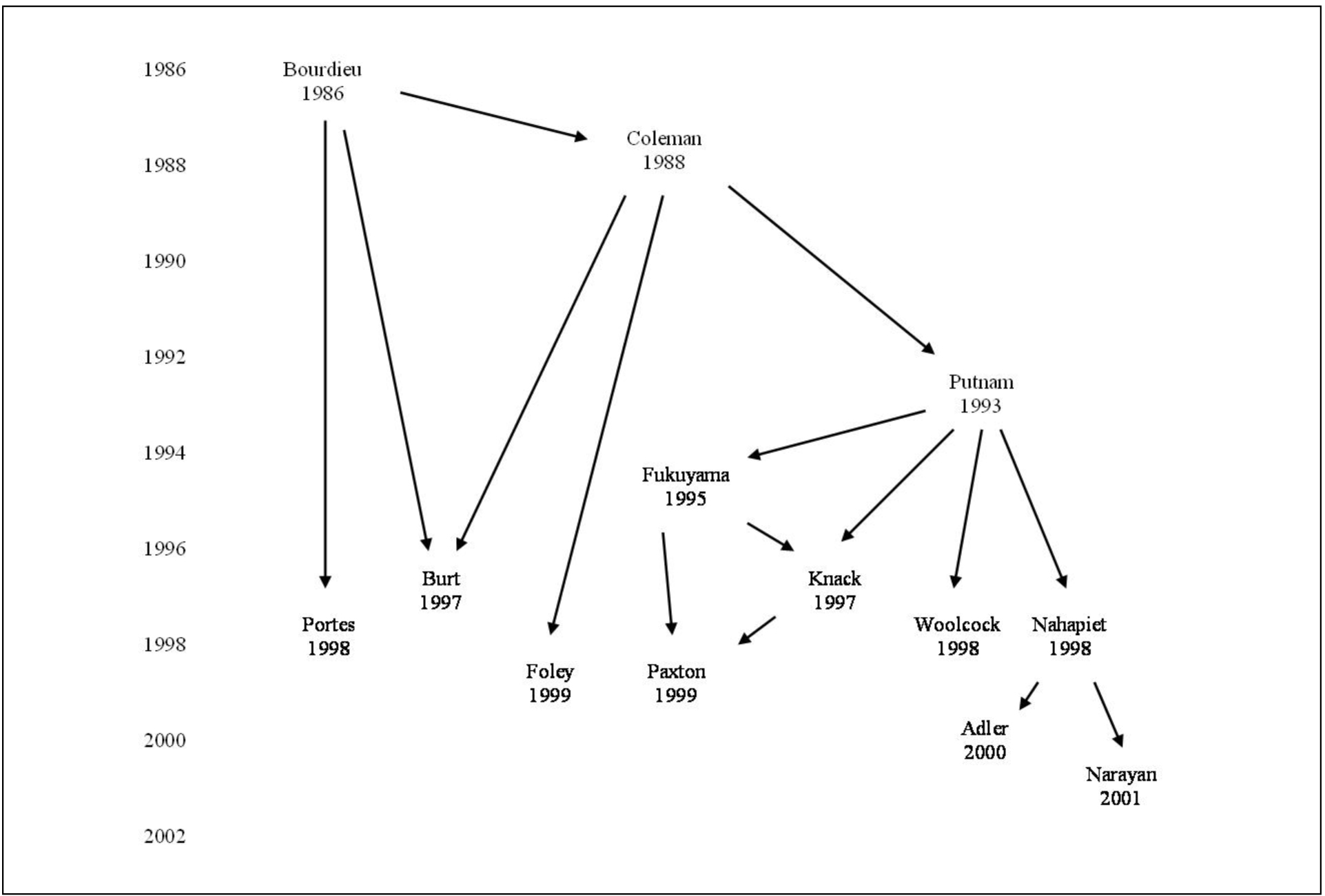 The authors discussed above; Bourdieu, Coleman and Putnam; are most commonly cited for the basis of contemporary discussions on social capital. They represent early attempts to identify and conceptualize this complex theory. Grootaert and Van Bastelaer (2002a)[26] suggested that the social capital model may currently be at the same early stage that human capital theory was thirty or forty years ago. Many authors have since progressed our understanding, and particularly the suitable operationalization, of social capital (refer to figure 4).