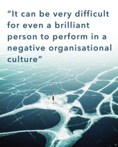 A common misconception is that organisations are successful when they have the ‘right people’. The right people being those who are talented, experienced, hardworking, creative, and innovative. But this is only part of the story because an organisation is more than the sum of its people. The success of an organisation is the result of both human capital (the people) and organisational culture (ie social capital).