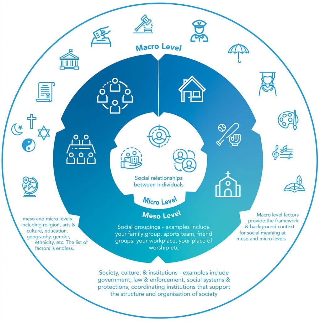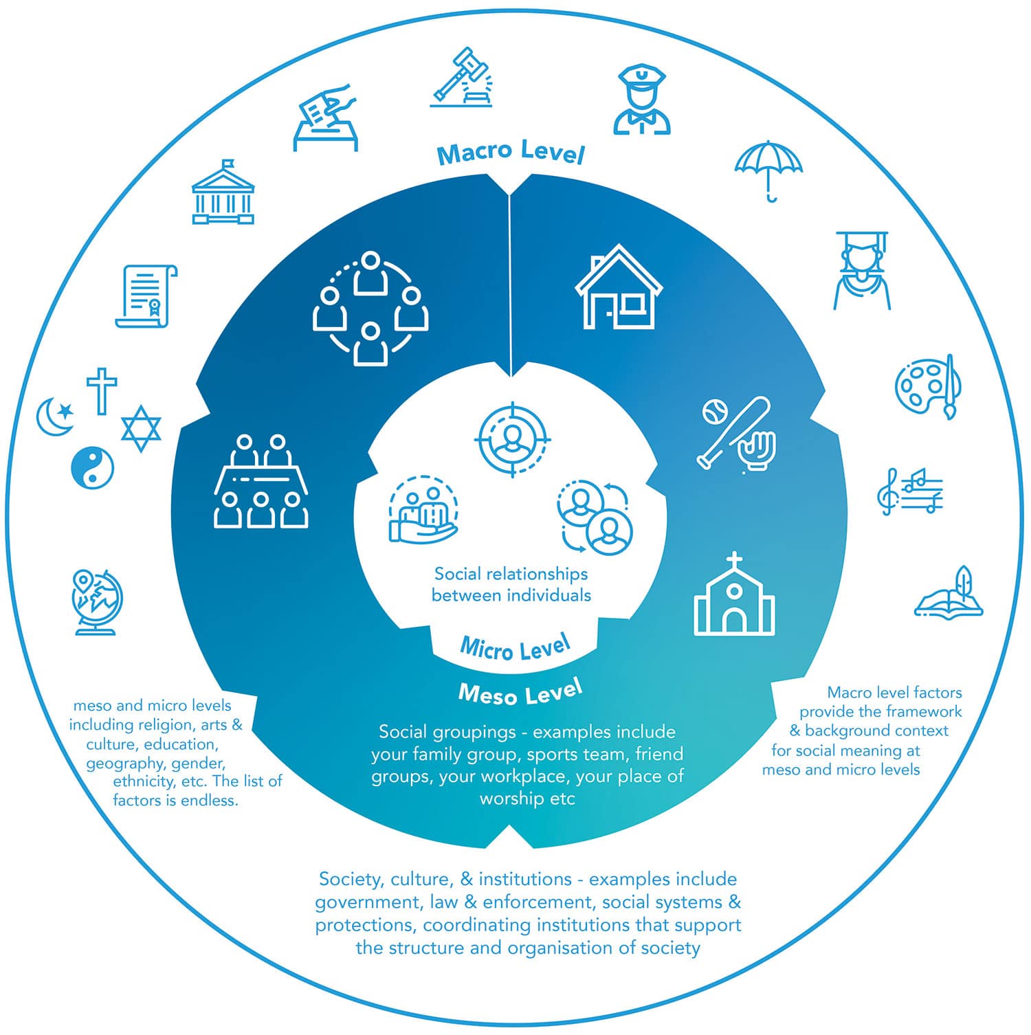 At all levels it is important to acknowledge difference and diversity. Everyone is different, every relationship has unique characteristics, and every social grouping has their own identity, norms, shared understandings that exist within broader community, cultural and societal norms, and structures. For these reasons social capital is not homogenous. When aspects of social capital are averaged or aggregated, they can lose meaning, significance, and relevance. At the macro level it is important to not lose sight of the multitude of overlapping and interrelated fields[27]. This emphasises the generally relevant and widely applicable nature of macro level factors.