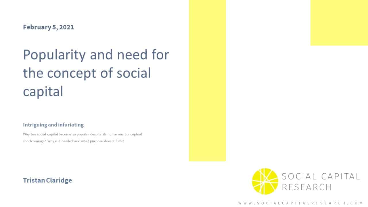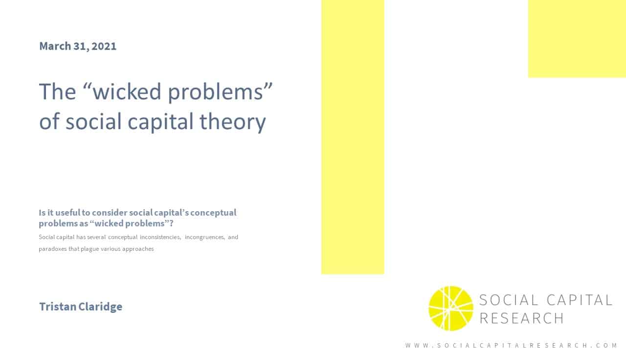 Over the last few years, Tristan Claridge has given several informative webinars on social capital. You can watch these webinars for free on YouTube. The details are listed below with links to the videos.